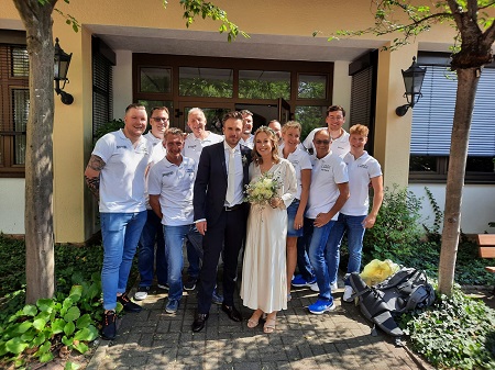 Spalier stehen am 21.08.2021 - Hochzeit von Peter und Laura Höhl |